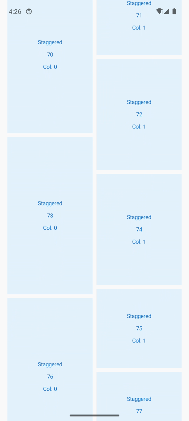 LazyAdaptiveLayout — высокопроизводительный, настраиваемый адаптивный grid-layout для Android Jetpack Compose с ленивой загрузкой и адаптивной оптимизацией прокрутки. Поддерживает несколько типов раскладок: staggered, uniform, full-width и пользовательские layout’ы со span-настройками, с интуитивным DSL-API.