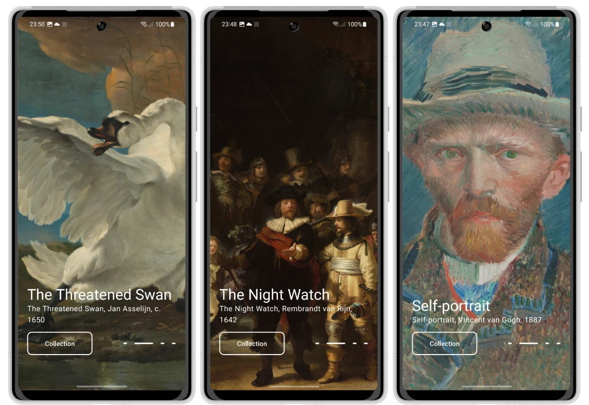 - Rijksmuseum — мультимодульное мультиплатформенное приложение на Kotlin и Compose, которое предлагает захватывающий способ изучения художественной коллекции Рейксмузея в Амстердаме