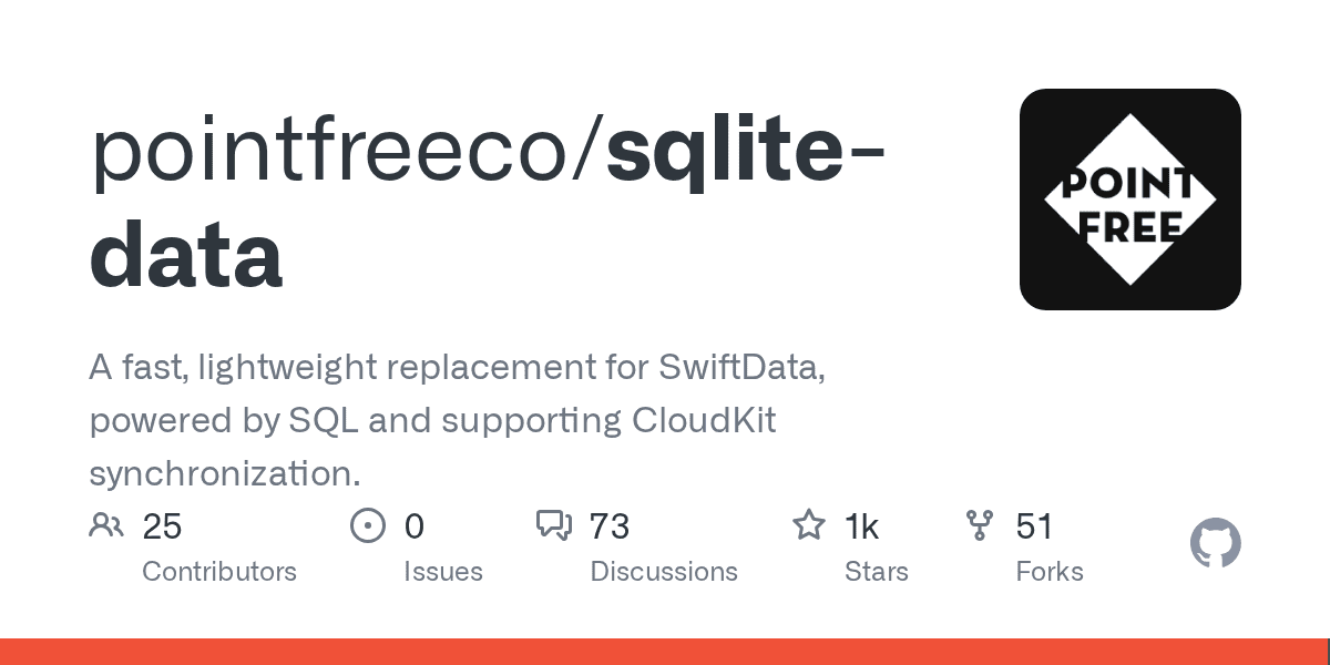 SQLiteData — это быстрая и лёгкая замена SwiftData от Point-Free, включающая SQL и синхронизацию с CloudKit (и даже шаринг CloudKit), построенная на основе популярной библиотеки GRDB.