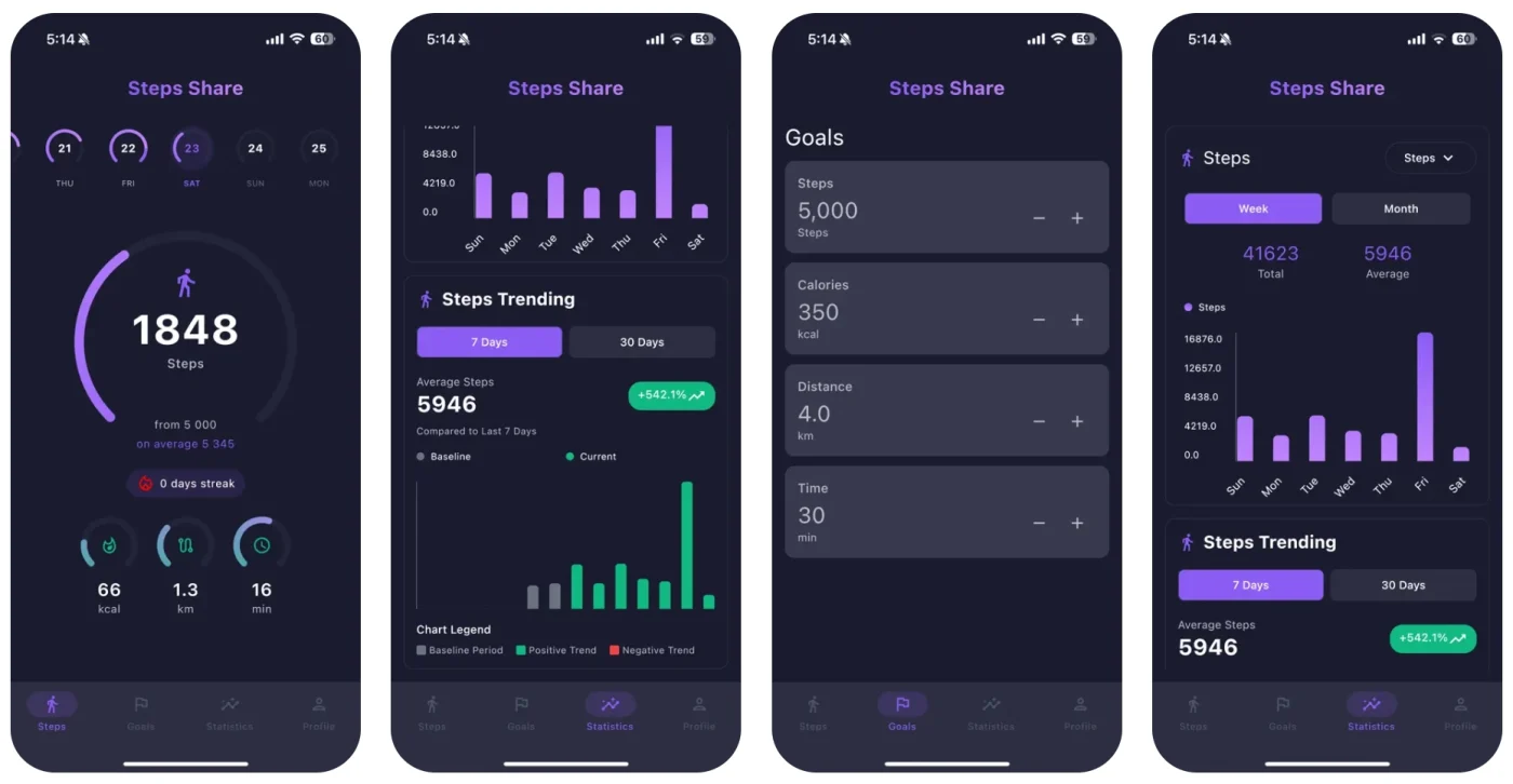 StepsShare — cовременное кроссплатформенное приложение для отслеживания шагов, созданное на Kotlin Multiplatform и Compose Multiplatform. Отслеживайте количество шагов за день, ставьте персональные цели и отслеживайте свой прогресс на устройствах Android и iOS.