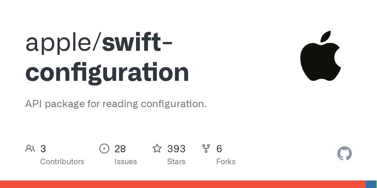 Swift Configuration — библиотека от Apple для чтения конфигураций в приложениях. Swift Configuration задает уровень абстракции между читателями конфигурации и провайдерами. Приложения и библиотеки считывают конфигурацию через согласованный API, в то время как фактический поставщик настраивается один раз в точке входа приложения. Библиотека позволяет объединять нескольких поставщиков в иерархию, где значения из источников с более высоким приоритетом переопределяют значения из источников с более низким приоритетом. Поддерживает множество встроенных провайдеров — переменные окружения, аргументы командной строки, JSON или YAML файлы, директории файлов, значения в памяти и т.п.