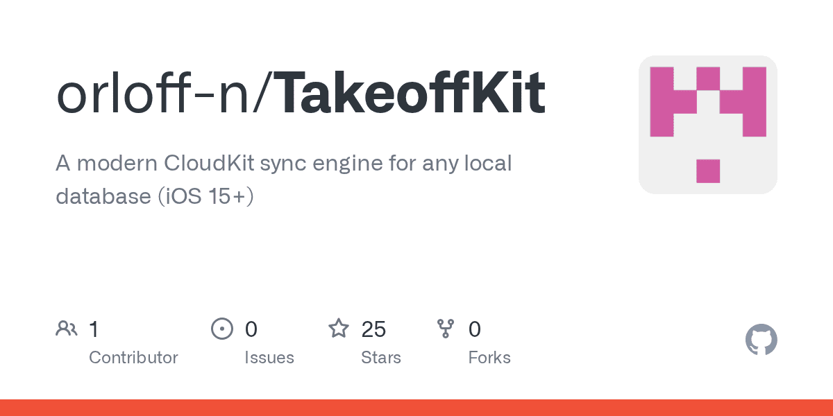 TakeoffKit — это библиотека Swift, упрощающая синхронизацию локальных данных с использованием CloudKit, абстрагируясь от его многочисленных сложностей, таких как преобразование CKRecord, ограничение скорости запросов, обработка ошибок и многое другое. Она предоставляет механизм синхронизации, аналогичный CKSyncEngine от Apple, но с более точным контролем и лучшей обратной совместимостью. Механизм синхронизации разработан для работы с любой локальной средой хранения данных — CoreData, SwiftData, Realm и т.д.