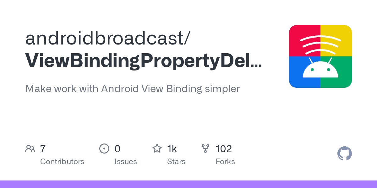 ViewBindingPropertyDelegate — простая работа с Android View Binding. Библиотека управляет жизненным циклом ViewBinding и очищает ссылки на него для предотвращения утечек памяти, устраняет необходимость хранить нулевые ссылки на View или ViewBinding, лениво создает ViewBinding.