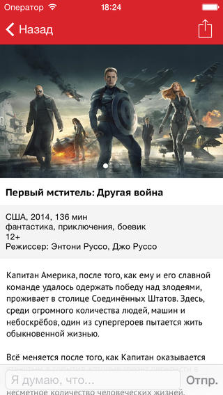 Да, у нас довольно внушительный список планирующихся нововведений для следующих версий. Из того, что сейчас готовится к выходу — расписание показов фильмов с выбором времени и ближайшего кинотеатра. Помимо этого, мы, конечно же, отслеживаем и учитываем отзывы пользователей о приложении.