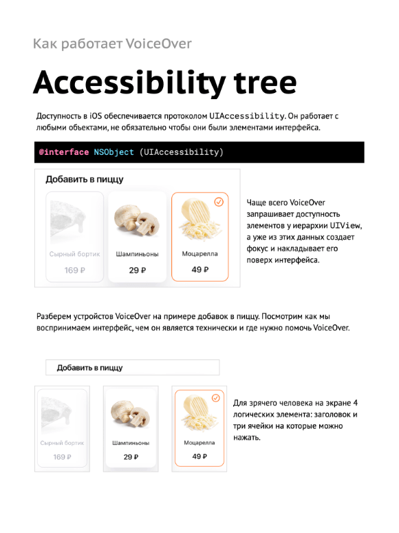 Михаил Рубанов, Mobile Head в Додо Пицце, написал книгу про разработку доступных приложений — он рассказал как адаптировать приложения для незрячих, парализованных, слабовидящих и т.д.