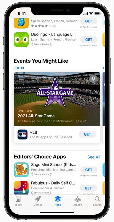 Всё чаще игры и приложения становятся площадкой для разного рода событий: соревнований, премьер фильмов, живых трансляций. Теперь пользователи смогут находить такие мероприятия прямо в App Store — в персональных рекомендациях, редакторских подборках, результатах поиска и на продуктовых страницах приложений. Разработчикам это даст возможность расширить аудиторию: можно будет привлечь новых пользователей и восстановить контакт с теми, кто перестал пользоваться приложением. События — это удобный способ сообщить пользователям важные новости или рассказать об обновлениях в приложении.