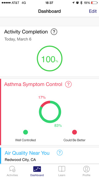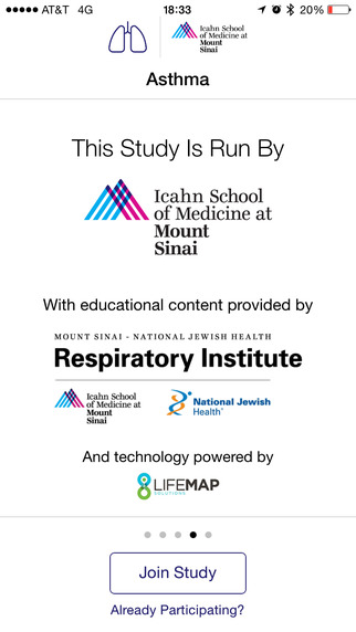 Приложение Asthma Health, разработанное Медицинским институтом Айкана в Маунт-Синае и компанией LifeMap Solutions, помогает больным астмой узнавать и отслеживать своё состояние, корректировать поведение и придерживаться программ лечения в соответствии с современными стандартами. Исследователи изучают комплекс симптомов у пациента и возможные причины ухудшений, чтобы разрабатывать индивидуальные программы лечения астмы.