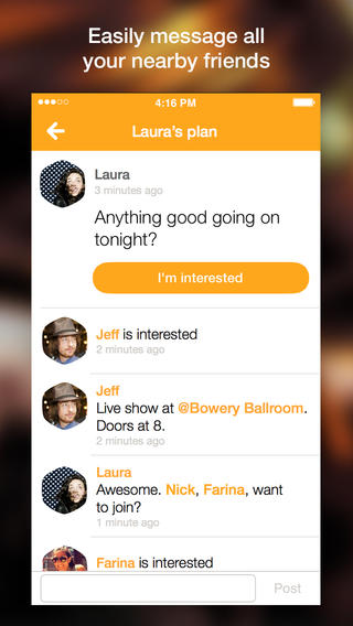 Тем не менее чекины остались, и вы по-прежнему можете снабдить каждый комментарием и стикером. Исчезли, правда, бейджи и очки (они останутся в оригинальном приложении Foursquare, которое выйдет летом), зато появились Plans, хаб для сообщений, в котором можно планировать встречи, нечто типа Твиттера для встреч, и Mayors 2.0, звания мэров внутри сообщества ваших друзей.