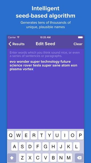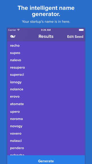 Вы перечисляете ему ключевые области, в которых работает ваш стартап, а приложение при помощи специальных алгоритмов выдает вам тонны синтетических слов, которые можно использовать для названия компании (заодно можно сразу посмотреть, доступны ли домены с таким словом).