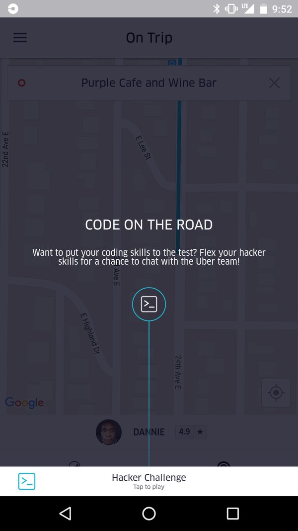 Джошуа Дебнер, работник Microsoft, в Twitter поделился скриншотами теста, которым приложение Uber озадачило его во время поездки.