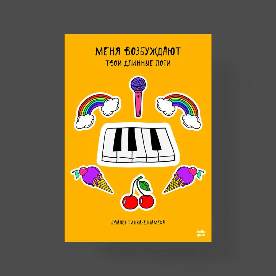 Hello Guru, магазин постеров для офиса, видимо, решили немного поэпатировать нас и выпустили довольно странные валентинки ко Дню Святого Валентина. Сверху написано «Меня возбуждает», а дальше — неоднозначное продолжение, которое описывает определенный узкий аспект работы того или иного специалиста.