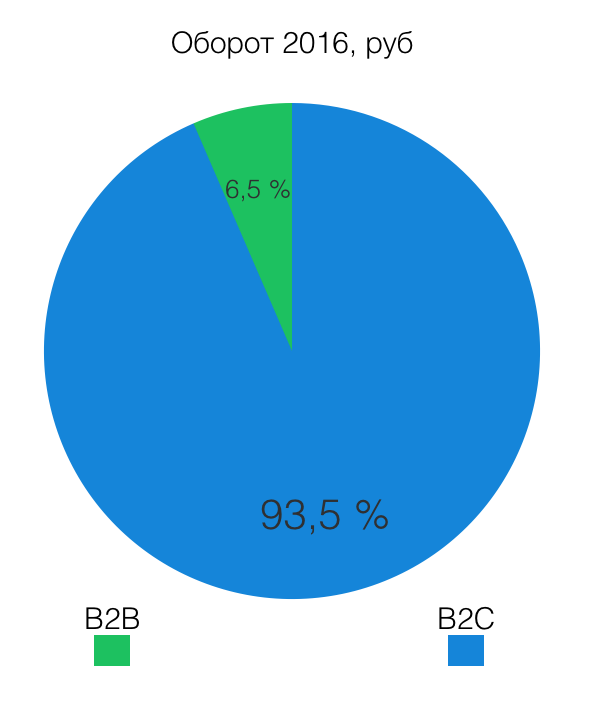 Доля B2B продаж от общего оборота выросла до 6.5%, что на 1.5 п.п. больше, чем в 2015 году. Доля B2C продаж Lingualeo по итогам 2016 года составила 93.5%.