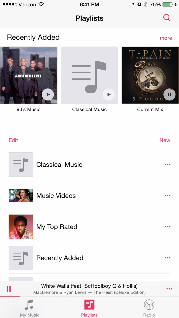Предположительно в приложении будет новый потоковый сервис, но пока это просто редизайн и оттачивание нескольких функций. Среди них недавно добавленные композиции, новое iTunes Radio, новый мини-плеер, новый поиск.