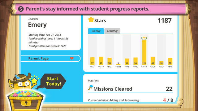 Чтобы поддерживать вовлеченность детей, Todo Math использует модель игры, в которой дети могут почувствовать себя исследователями, находя сундуки с сокровищами и другие награды по мере прохождения уровней.