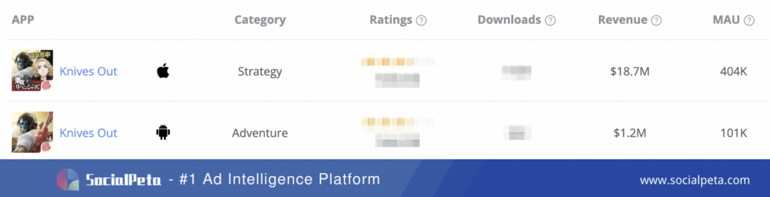 KNIVES OUT стала широко известной игрой в Японии благодаря огромному количеству рекламы и сотрудничеству с другими IP, а также вакантности жанра battle royale на японском рынке. Когда рост числа игроков замедлился, игра все еще сохраняла очень высокий доход, заработав более 18.7 миллионов долларов США в App Store и более 1.2 миллионов долларов США в Google Play.