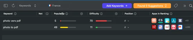 photo to pdf→ популярность ~40photo vers pdf(французский эквивалент) → популярность ~5
