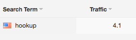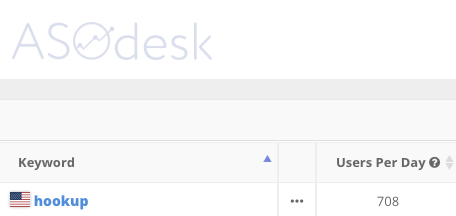 Запросы «hookup» и «hookups» имеют сравнимый показатель частотности поискового запроса по данным популярного ASO-сервиса, причем второй запрос имеет более высокий показатель, чем первый. Если мы посмотрим на подсказки App Store, то увидим, что запрос «hookup» появляется гораздо раньше запроса «hookups» в саджестах. Первое появление «hookups» мы можем наблюдать только на 5 месте в подсказках к запросу «hookup». С учетом того факта, что подсказки в App Store формируются исходя из принципы убывания частотности, это нам говорит о том, что запрос «hookup» обязан быть довольно сильно частотнее, чем «hookups». Что мы и видим в сервисе ASOdesk.com.