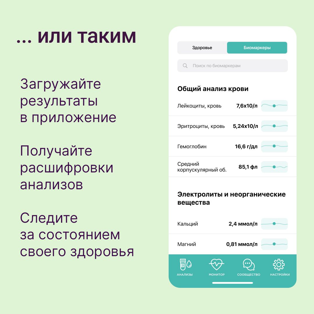 - Не жди очередь на запись ко врачу – расшифруй результаты своих анализов с помощью приложения;
