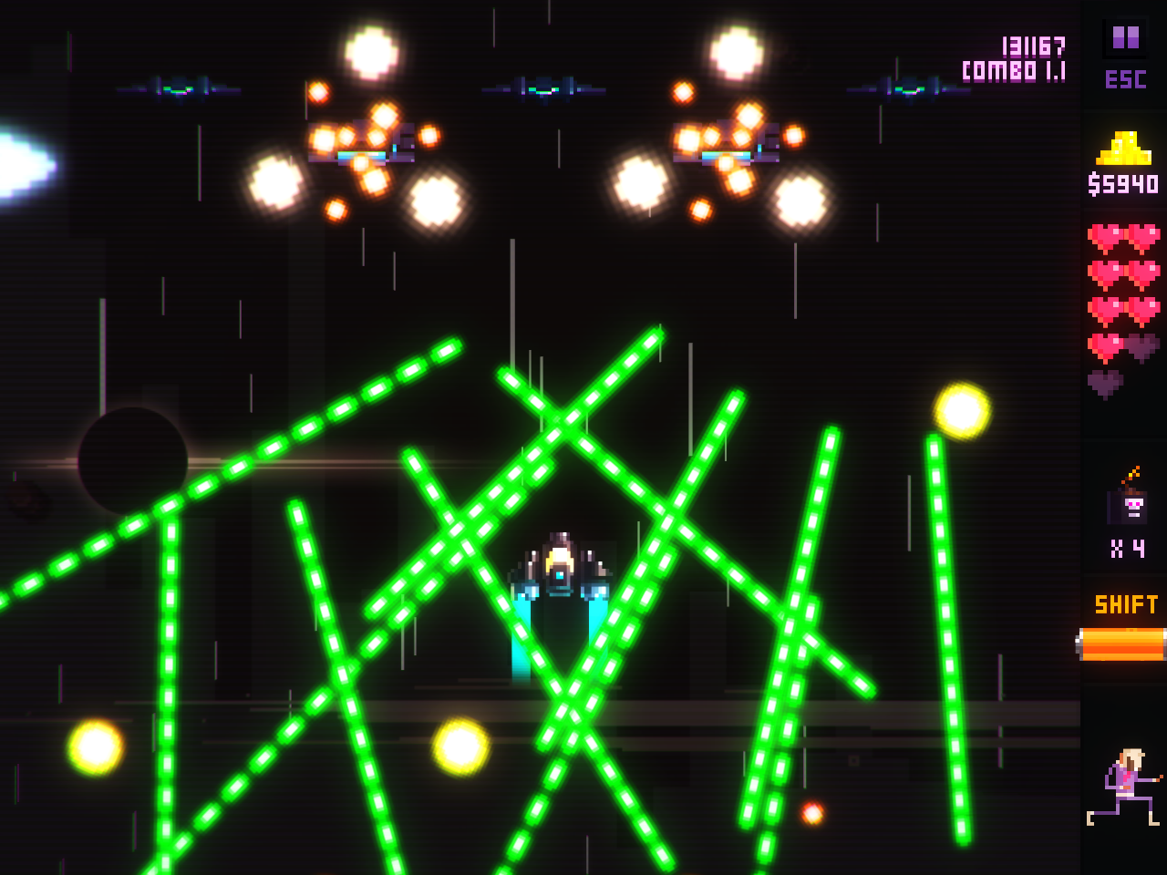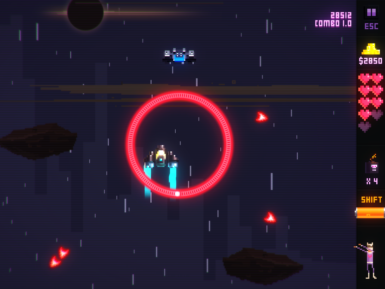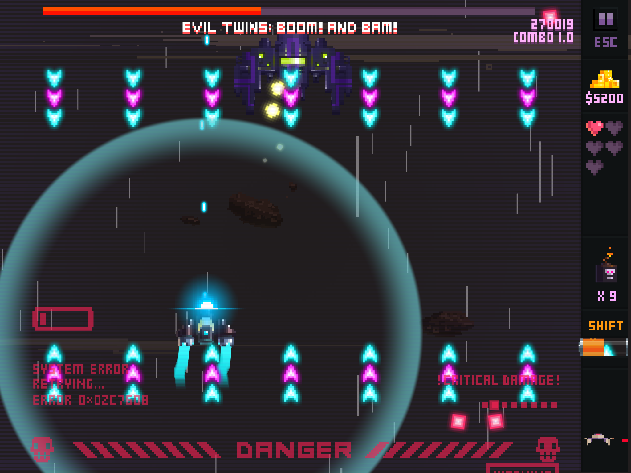 Идея заключается в том, чтобы сделать проект в жанре Bullet Hell более понятным, даже казуальным (на низком уровне сложности), доступным для аркадной аудитории. Пиксельность — лишь способ визуализации этой идеи.