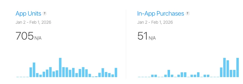 Для сравнения я прикрепил скриншот, показывающий количество использований приложения и внутриигровых покупок за последний месяц.
