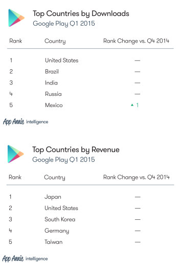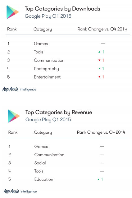 Полностью отчет вы можете прочитать тут: http://ru.blog.appannie.com/app-annie-index-market-q1-2015/.