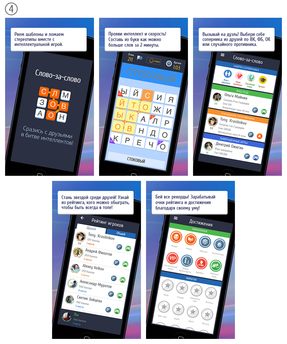 Увеличение числа установок приложения после микро-теста впечатлило, и мы решили провести своё тестирование. Не так давно наша компания Incrdbl Mobile Entertainment разработала словесную игру «Слово за слово — игра с друзьями», на которой мы решили провести A/B тестирование.