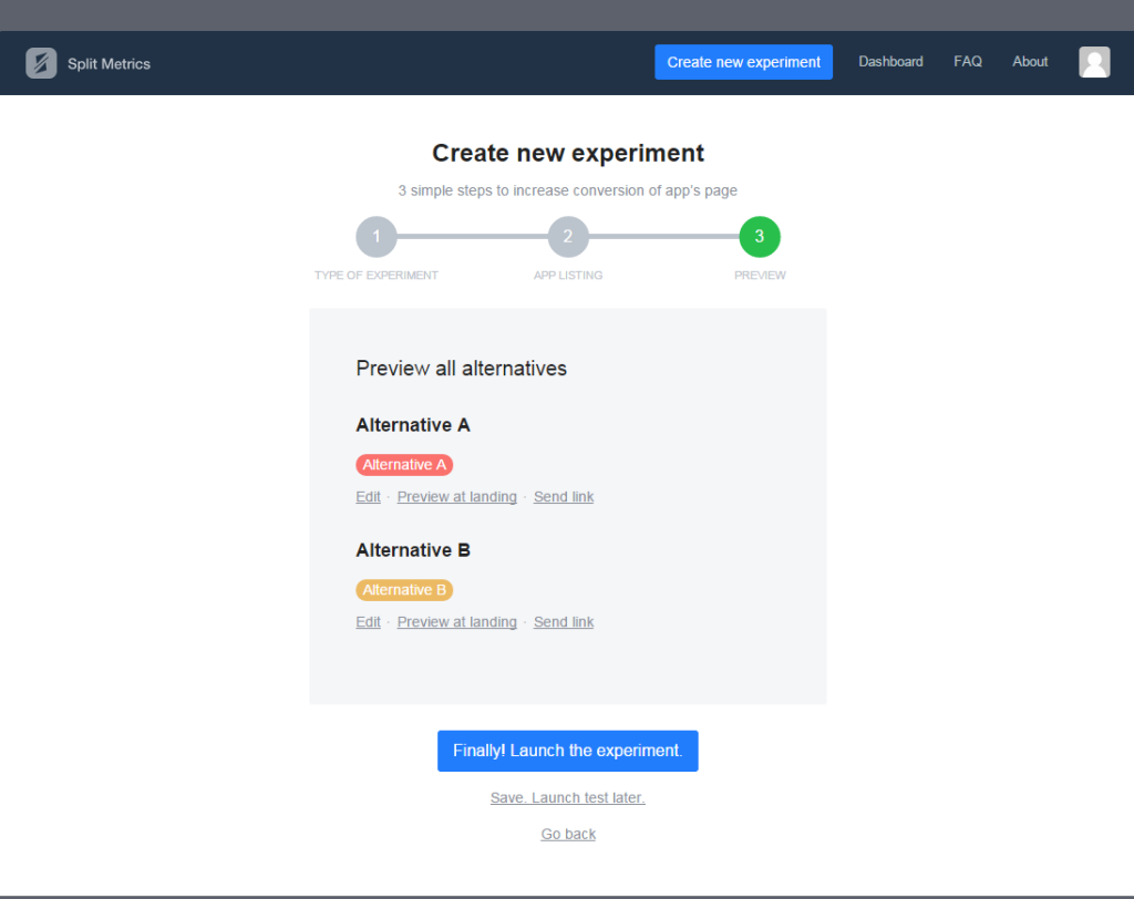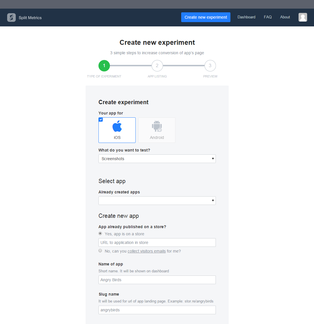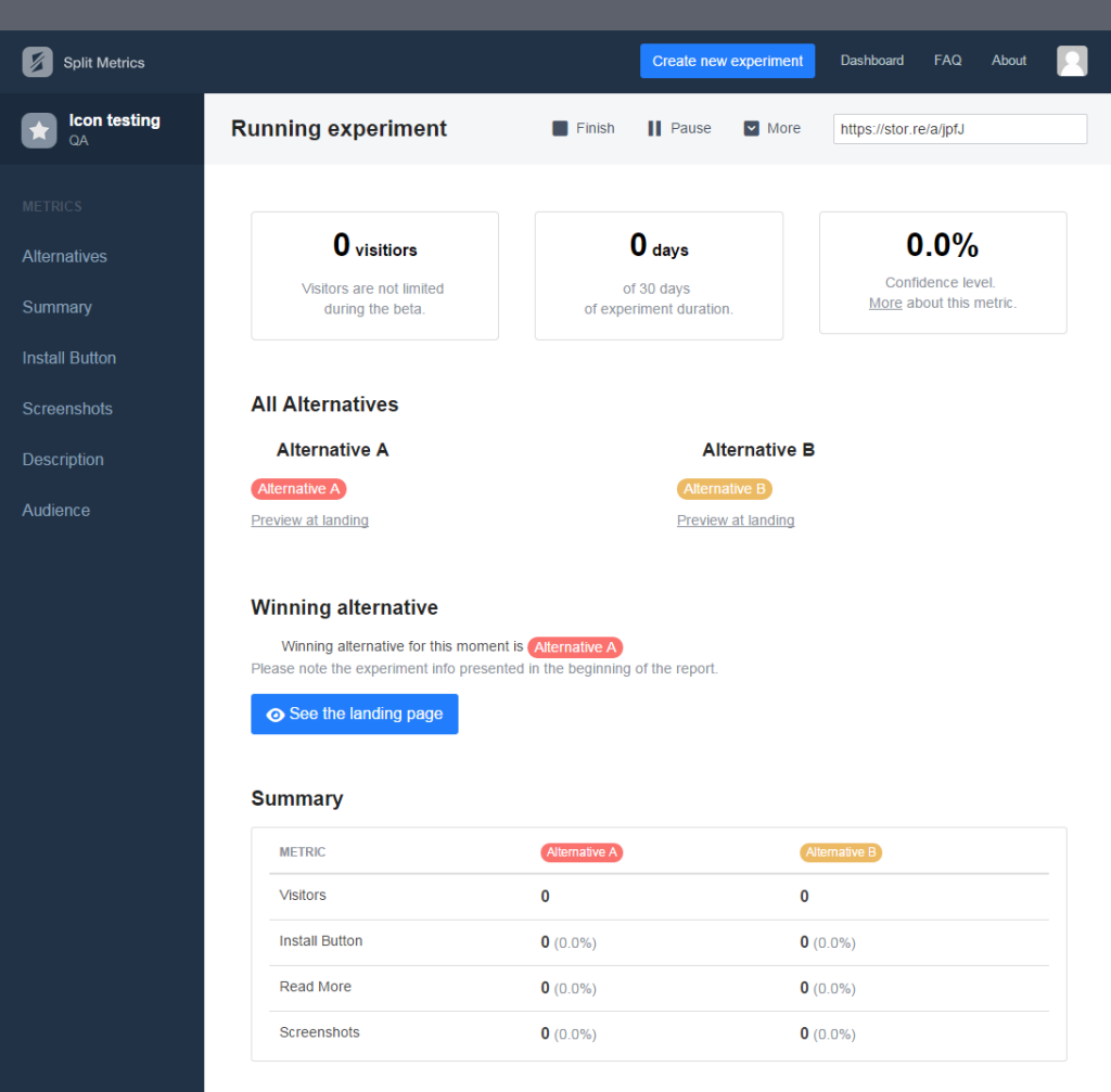 Сторы не позволяют проводить A/B тесты, эксперименты мы проводим на собственных специальных лендингах, которые функционально повторяют страницы App Store и Google Play.